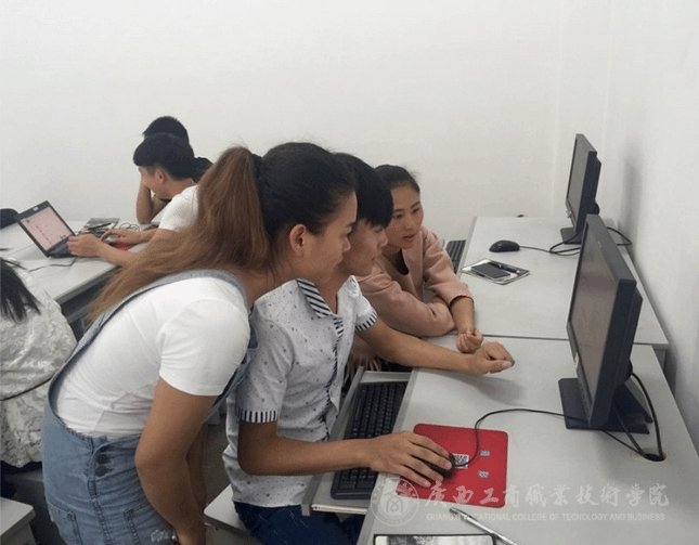 學院易班工作站的同學們在電腦前按照陳老師的講解進行相關操作