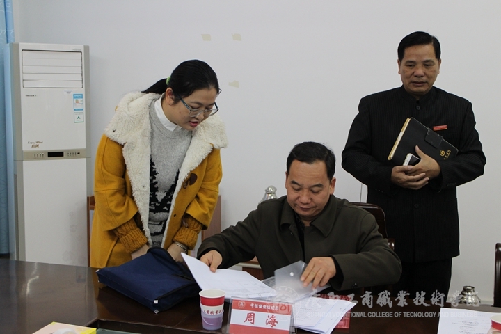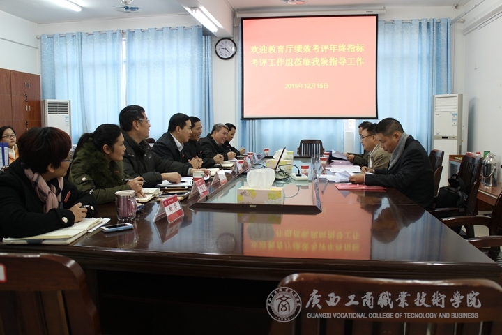 2015年12月15日,教育廳績效考評年終指標(biāo)考評工作組蒞臨我院指導(dǎo)工作,教育廳職成處副處長萬鋒鋒對我院項目招標(biāo)工程和自治區(qū)獎助學(xué)金評定工作進(jìn)行了考察,我院負(fù)責(zé)教學(xué)工作李維副院長出席此次會議并向其進(jìn)行了年度工作匯報,此外,教務(wù)科研處、會計系、財信系、學(xué)工部、現(xiàn)教中心等相關(guān)部門負(fù)責(zé)人參加此次會議,各司其職,井然有序地就相關(guān)考評工作組專家提出的問題進(jìn)行了解答。