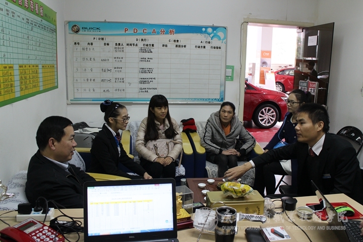 座談中,玉林市得利汽車銷售服務(wù)有限公司財(cái)務(wù)總監(jiān)黃總監(jiān)對(duì)我院財(cái)信系杜嬋同學(xué)近三個(gè)月所取得的工作業(yè)績和已掌握的專業(yè)技能給予了充分的肯定,并希望雙方能在今后進(jìn)一步加強(qiáng)校企合作。同時(shí),黃總監(jiān)還強(qiáng)調(diào)了學(xué)生提升為人處事、善于不斷總結(jié)與思考等軟實(shí)力的重要性,希望實(shí)習(xí)生們要有良好的工作心態(tài),努力從基層鍛煉,不斷提高自身專業(yè)技能和競爭力,樹立良好的職業(yè)規(guī)劃,為今后不斷提升奠定夯實(shí)的基礎(chǔ)。
