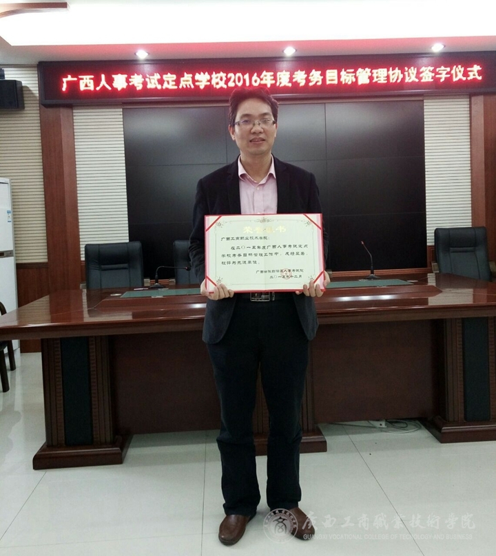 12月24日,從廣西區(qū)人事考試院傳來喜訊,我院在2015年度全區(qū)人事考試定點(diǎn)學(xué)??紕?wù)目標(biāo)管理工作中,成績突出,被評為先進(jìn)工作單位。