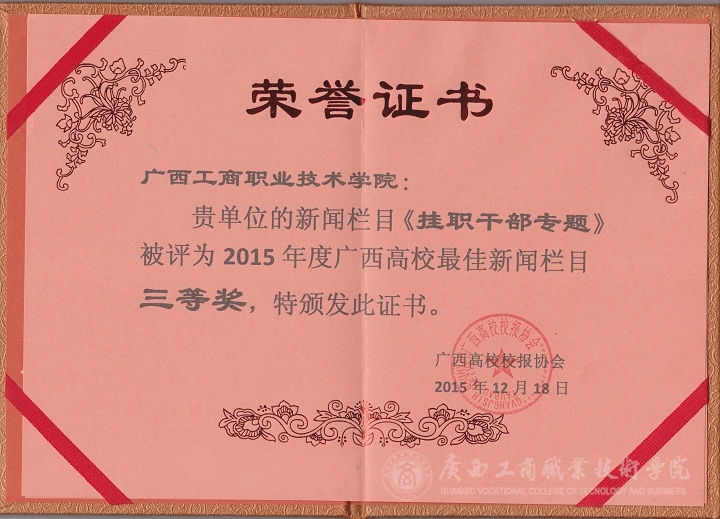 (我院《掛職干部專題》獲評廣西高校最佳新聞欄目三等獎)