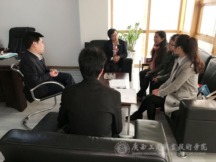 為了深化校企合作,加強(qiáng)我校學(xué)生頂崗實(shí)習(xí)過程管理,掌握學(xué)生頂崗實(shí)習(xí)狀況及企業(yè)對(duì)人才的需求。2015年12月22日上午,由教務(wù)科研處副處長(zhǎng)謝偉燕老師領(lǐng)隊(duì),經(jīng)管系就學(xué)副主任唐燕雯老師、經(jīng)管系就業(yè)秘書何麗瑩老師、財(cái)信系就業(yè)秘書莫?jiǎng)P淳老師等一行4人走訪了廣州多迪網(wǎng)絡(luò)科技有限公司南寧分公司、泰康人壽保險(xiǎn)股份有限公司南寧分支公司2家企業(yè),檢查看望了學(xué)院2013級(jí)11名正在企業(yè)頂崗實(shí)習(xí)的學(xué)生。