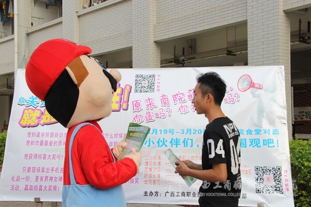 3月19日中午12點(diǎn),活動正式開始,新聞中心學(xué)生部的成員穿著動漫人物"馬里奧”的衣服在活動現(xiàn)場一會兒發(fā)傳單,一會兒跑去“招攬顧客”,一會兒又跳舞…吸引了不少同學(xué)跑來合影,同學(xué)們紛紛拿出手機(jī)掃描海報(bào)上的二維碼,并參與了抽獎活動,其中有幾位抽到了大獎的同學(xué)還高興的拿著獎品拍照留念!