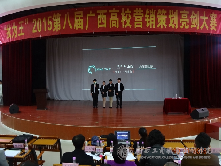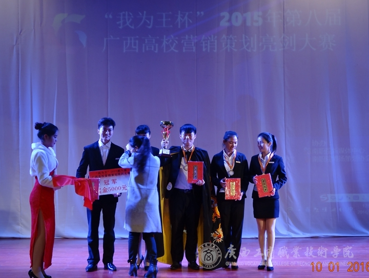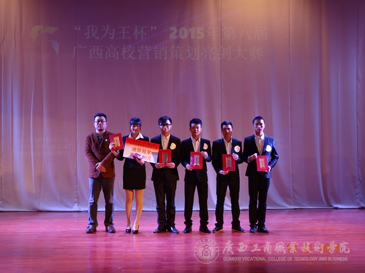 2016年1月10日13時(shí),由中國(guó)市場(chǎng)營(yíng)銷(xiāo)課程標(biāo)準(zhǔn)開(kāi)發(fā)中心廣西分中心主辦,廣西南寧奧理可贏企業(yè)管理咨詢有限公司承辦、廣西太常服飾有限公司贊助的“我為王”2015第八屆高校營(yíng)銷(xiāo)策劃亮劍總決賽在廣西財(cái)經(jīng)學(xué)院舉行。我院共有4支隊(duì)伍在兩個(gè)多月的不斷奮戰(zhàn)中,經(jīng)過(guò)層層地選拔,在廣西區(qū)一百多支參賽隊(duì)伍中脫穎而出,并進(jìn)入到了總決賽環(huán)節(jié)。這是該賽舉辦八屆以來(lái),廣商院首次擁有4支隊(duì)伍進(jìn)入總決賽并奪得一系列大獎(jiǎng)的重大突破。