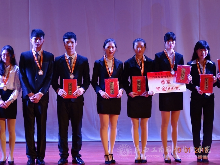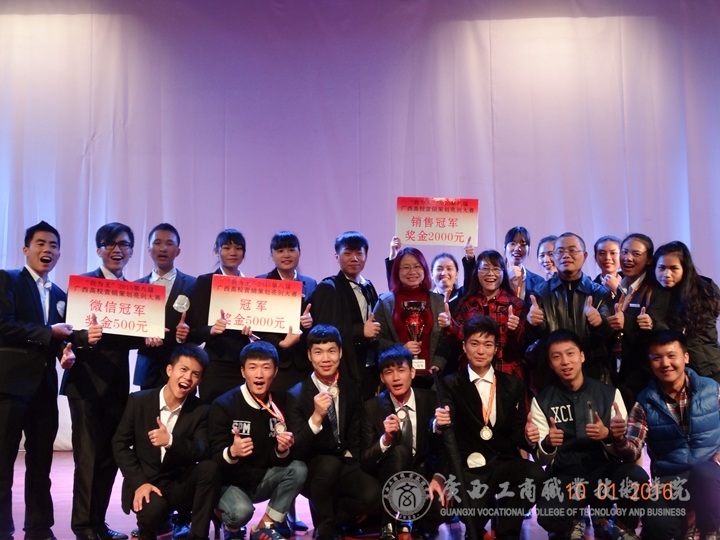 由營(yíng)銷(xiāo)1434班賀炳瑋、何海秋、溫婷宏、李雅倩及營(yíng)策1432班劉行杰組成的“內(nèi)在美”團(tuán)隊(duì)從初賽開(kāi)始就以廣西高校銷(xiāo)量第一、廣西高??偝煽?jī)第一的優(yōu)異成績(jī)進(jìn)入決賽,經(jīng)過(guò)團(tuán)隊(duì)選手一番精彩的PPT策劃方案演講,一舉成功斬獲總決賽冠軍、銷(xiāo)售冠軍、最佳視頻獎(jiǎng)的好成績(jī)!由營(yíng)銷(xiāo)1434班孔倩姿、余端端、張龍泉、梁進(jìn)康、陳怡沖五位同學(xué)組成的“KING”團(tuán)隊(duì)也以優(yōu)異的成績(jī)一舉奪下總決賽的季軍。另外,由營(yíng)銷(xiāo)1432班蔡佳斌、營(yíng)銷(xiāo)1433班陳智慧、營(yíng)銷(xiāo)1431班石超蘭、營(yíng)策1503班莫小凡、營(yíng)策1501班龐廣玉組成的“多米諾”團(tuán)隊(duì)獲得微信冠軍、優(yōu)秀獎(jiǎng)!由營(yíng)策1433班黎霞、營(yíng)策1503班謝坤宏、馬彩彬、許本海組成的“宏彬?!眻F(tuán)隊(duì)獲得優(yōu)秀獎(jiǎng)!同時(shí),李紅梅教授與張煌強(qiáng)老師都獲得了優(yōu)秀指導(dǎo)教師獎(jiǎng)!