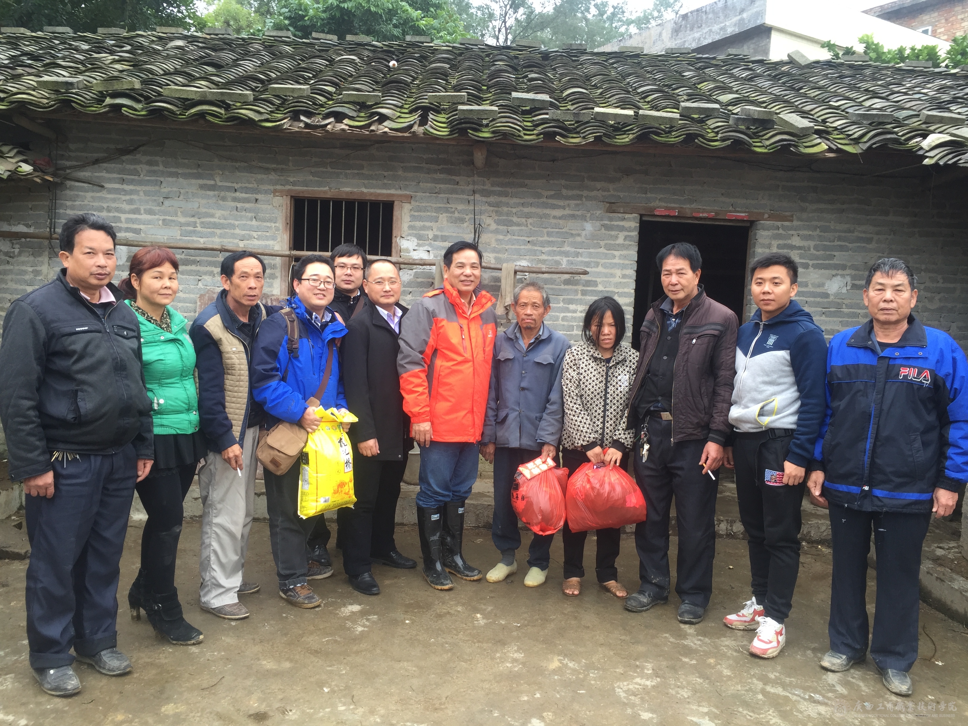 春節(jié)前夕,教務(wù)科研處黨支部、學(xué)工處黨支部與陸川縣水亭村黨總支、那若村黨總支、南寧培育圖書有限責(zé)任公司聯(lián)合開展了“扶貧濟困送溫暖”活動,為水亭村、那若村9戶貧困戶和1戶困難黨員各送去200元慰問金、一帶大米和冬衣若干。這次慰問的貧困戶和困難黨員都是精準(zhǔn)扶貧識別工作中篩選出來的絕對貧困戶,基本是因病因殘致貧,脫貧難度很大。在2016年春節(jié)到來前夕,教務(wù)科研處黨支部牽頭組織了這次活動,教務(wù)科研處的教職工捐獻了100多件衣物,南寧培育圖書有限責(zé)任公司捐獻了3000元慰問金。教務(wù)科研處韋勝強處長、學(xué)工處付光處長、水亭村黨總支李書記、第一書記譚爵璽、那若村黨總支黃書記、第一書記譚序光、南寧培育圖書有限責(zé)任公司李經(jīng)理等帶領(lǐng)精準(zhǔn)扶貧識別工作隊員、公司職員和村委干部20多人參加慰問,大家認真了解貧困戶的生產(chǎn)和生活狀況,鼓勵貧困戶貧困不喪志,在政府的幫助下爭取早日脫貧。貧困戶和困難黨員對大家頂著寒風(fēng)、冒著嚴寒前來慰問表示衷心感謝,并表示努力生產(chǎn)自救,盡快脫貧致富。