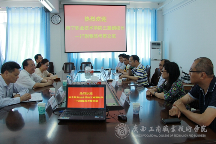 2015年4月1日上午,南寧職業(yè)技術(shù)學(xué)院副院長王鑫一行到我院考察交流。學(xué)院副院長李仕欽及相關(guān)部門人員陪同參觀校園,并召開座談會(huì)。