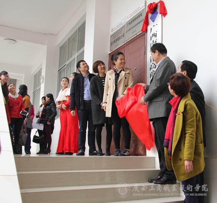 隨后與會人員移步到了328實(shí)訓(xùn)室,企業(yè)代表廣西南寧銘高商務(wù)有限公司總經(jīng)理黃淇和學(xué)院代表李維副院長進(jìn)行揭牌,廣西南寧銘高商務(wù)有限公司正式在學(xué)院落戶,校企合作揭牌儀式在熱烈掌聲中落下帷幕!