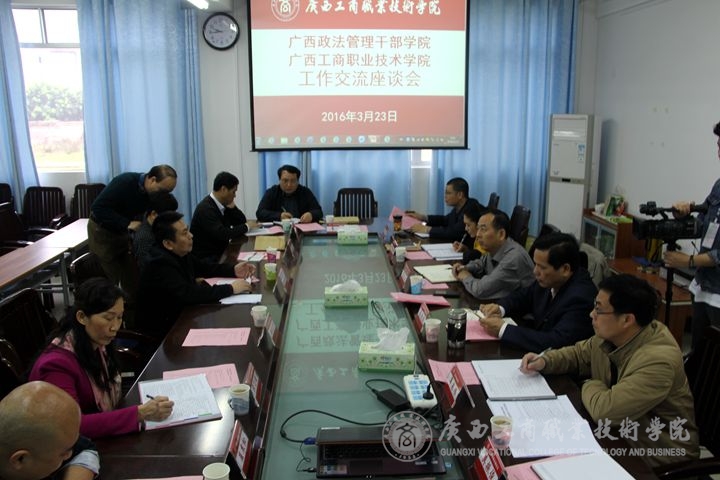2016年3月23日星期三上午,廣西政法管理干部學(xué)院楊懷甫副院長(zhǎng)一行七人到我院交流經(jīng)驗(yàn)。我院黨委副書記、紀(jì)委書記蒙啟成與我院相關(guān)部門負(fù)責(zé)人接待了楊懷甫副院長(zhǎng)一行七人。