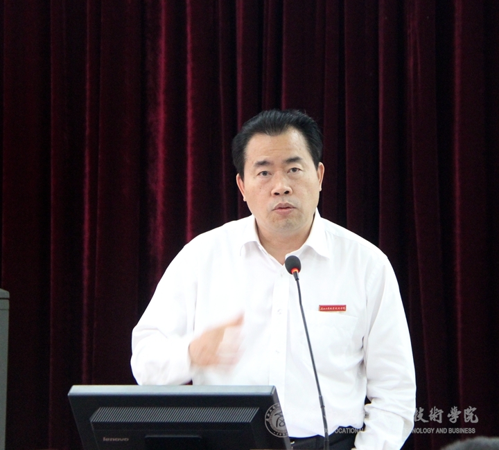 2016 年 4 月 19 日下午,我院在2145報告廳召開“兩學(xué)一做”學(xué)習(xí)教育工作座談會。學(xué)院黨委書記覃武云等全體學(xué)院領(lǐng)導(dǎo)、各部門負責人以及全體黨員參加了座談會。會議由學(xué)院院長陳杰主持。