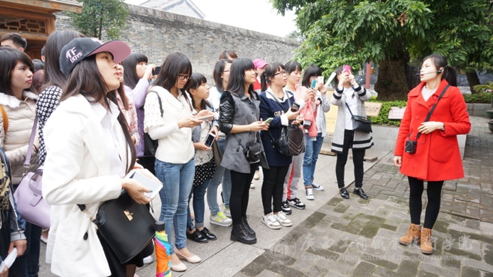 師生們?cè)趧⒂栏9示勇犎≈v解員介紹情況