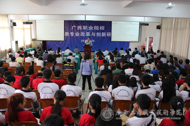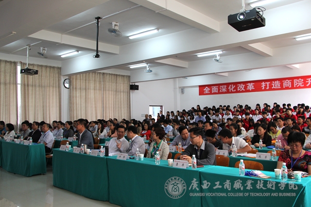 ??????? 2015年4月25號(hào)上午9點(diǎn)30分,"廣西職業(yè)院校營(yíng)銷類專業(yè)改革與創(chuàng)新研討會(huì)”在我院校本部2143報(bào)告廳召開(kāi),蒞臨我校參加研討會(huì)的有各行業(yè)、企業(yè)專家,財(cái)經(jīng)類職業(yè)院校領(lǐng)導(dǎo)、經(jīng)濟(jì)管理類系主任、營(yíng)銷類專業(yè)負(fù)責(zé)人,市場(chǎng)營(yíng)銷大賽領(lǐng)隊(duì)、指導(dǎo)老師。此外,參加此次大會(huì)的還有我校財(cái)經(jīng)類的教師們。