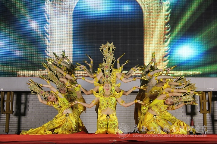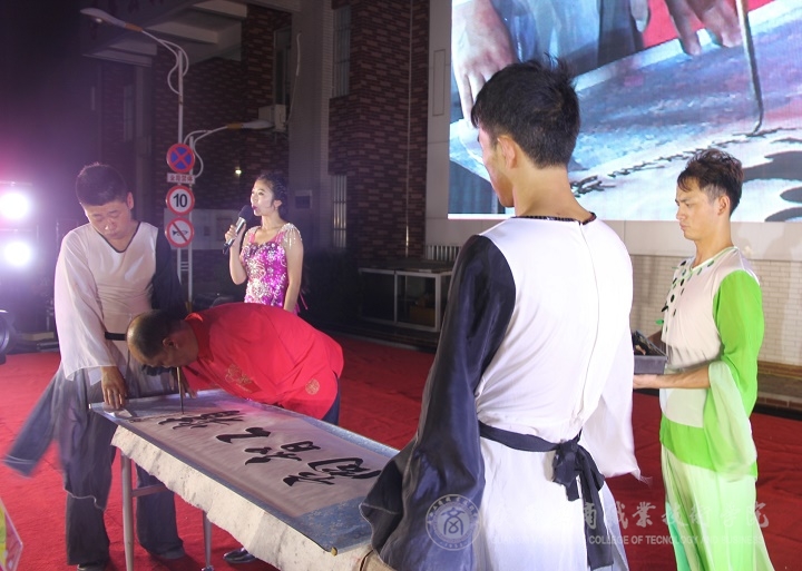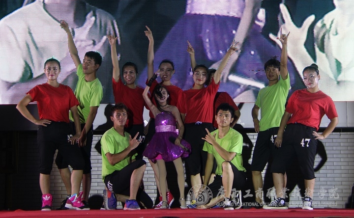在主持人的介紹下,開始了各具特色的精彩演出,舞蹈、演唱、樂器、口書、模仿秀、千手觀音這些表演無不牽動著廣商院師生的心。游韌有余的演奏樂器嗩吶和演唱的勵志歌曲《我的未來不是夢》讓振奮人心,精彩默契的雙人舞《鷹》,熱情的獨唱《我相信》和兄弟合唱《朋友》,柔美婉約的舞蹈《風(fēng)沙》,鏗鏘熱情的獨唱《載歌載舞》和歌舞演繹《荷塘月色》,極具高難度的藝術(shù)表演口書為廣商院獻(xiàn)出題字“精工智商”校訓(xùn),還有廣商院各系代表為藝術(shù)團(tuán)捐款環(huán)節(jié),更有盲人催人淚下的演唱《好人就在身邊》,聾啞人帶來曼妙多姿的舞蹈《魚》,還有大叔帶來熱情高漲的潮流舞蹈《江南style》,可愛的袖珍姑娘——甜甜為我們演唱了《隱形的翅膀》和《小蘋果》?,F(xiàn)場觀眾感受到她帶給大家的熱情,將晚會的氣氛逐漸推到高潮!一重又一重驚喜的模仿秀惹得臺下笑聲一片以及給觀眾帶來激情澎湃的歌曲《怒放的生命》,讓人看完真是久久不能忘懷。