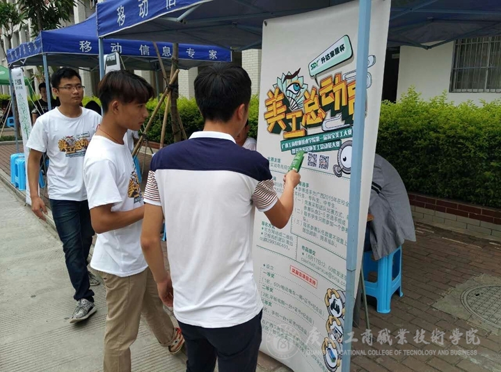 廣西財(cái)經(jīng)學(xué)院的宣傳工作在宿舍前的小廣場(chǎng)進(jìn)行,受到該校同學(xué)們的廣泛關(guān)注,他們表示對(duì)本次活動(dòng)很感興趣,很多同學(xué)都紛紛來到報(bào)名攤點(diǎn)前詢問比賽的報(bào)名方式以及比賽內(nèi)容。