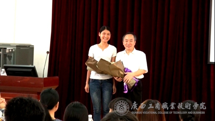 龔教授的講座充滿激情,語言幽默,生動(dòng)活潑,深入淺出,充分展示了大師的風(fēng)范。師生們從中了解了廣西在民族學(xué)研究領(lǐng)域的發(fā)展情況,領(lǐng)悟了“成功”與“付出”的正比關(guān)系?!八颊除垺钡娜煌瑢W(xué)還與龔教授進(jìn)行了積極的互動(dòng)。同學(xué)們?yōu)辇徑淌讷I(xiàn)上了鮮花和“商院風(fēng)”文化扇,表達(dá)了師生們對(duì)龔教授的尊敬和喜愛。