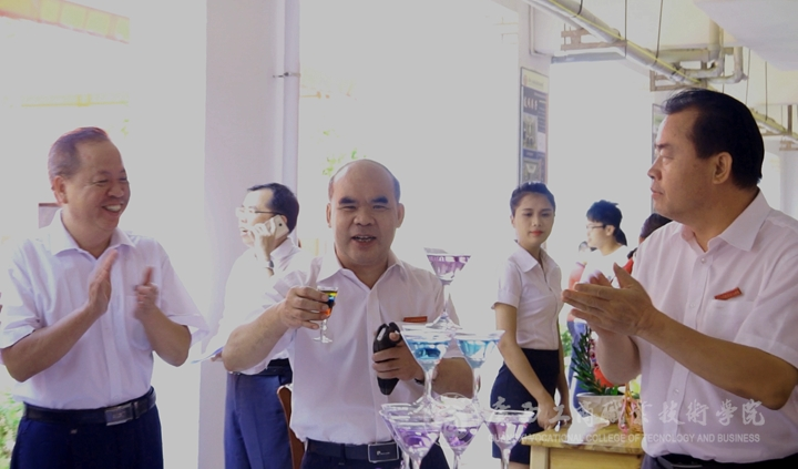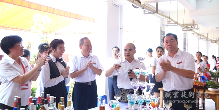 覃武云書記、陳杰院長、蒙啟成副書記、李仕欽副院長、黃永蓬副廳級調(diào)研員等一行人先后來到就業(yè)洽談會現(xiàn)場、學生畢業(yè)展演現(xiàn)場、教學成果展現(xiàn)場與用人單位、參展師生進行了親切友好的交談。在學生的畢業(yè)設計展,覃武云書記豎起了大拇指,為學生們漂亮的參展作品點贊。在西餐展臺,覃武云書記舉起學子們現(xiàn)場調(diào)好的雞尾酒向現(xiàn)場師生問好。在板鞋教學展演現(xiàn)場,他甚至調(diào)皮的穿起了板鞋,與其他老師玩起了板鞋游戲。