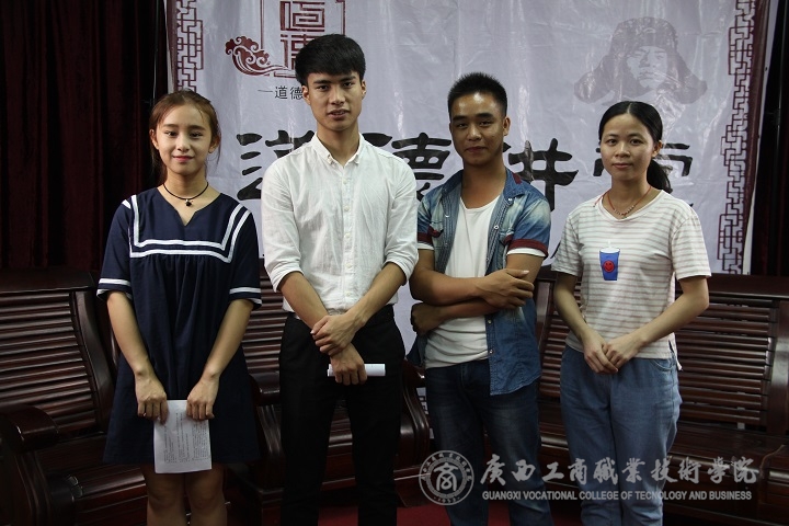 發(fā)揚五四精神,為振興中華民族而努力奮斗。本期的道德講堂的主題是弘揚中華美德,傳承五四精神。2016年6月17日晚19點,廣商院道德講堂邀請了來自營銷1433班的肖涼丹、何宗澤、吳澤豪、韋滿、許景鋼、陳攀等六位同學。他們是一群拾金不昧的孩子們,他們的良好事跡受到失主和廣大師生的表揚,更值得大家學習和借鑒。
