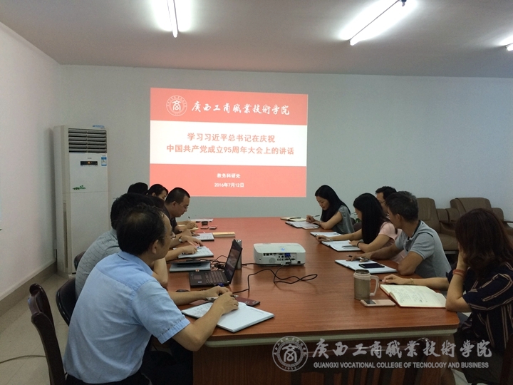 ??????? 與此同時(shí),宣傳部與現(xiàn)教中心黨支部、教務(wù)科研處、財(cái)務(wù)處、會(huì)計(jì)系、經(jīng)管系、財(cái)信系、公共基礎(chǔ)部分別在廣商院2223、學(xué)術(shù)廳、2327、2224、2318、2219等教室和辦公室對習(xí)總書記的“七一”重要講話進(jìn)行學(xué)習(xí)探討。其中,在2223教室,韋勝強(qiáng)部長圍繞八個(gè)“不忘初心、繼續(xù)前進(jìn)”與與會(huì)黨員同志進(jìn)行交流學(xué)習(xí)。他提出,習(xí)近平總書記重要講話中談及青年并給予了厚望,表明了黨對我國青年的關(guān)心和關(guān)注,這鼓舞著我院青年教師的成長。在2219教室,公共基礎(chǔ)部張居設(shè)主任圍繞“立足崗位,開拓進(jìn)取”,就“三十個(gè)要點(diǎn)”為大家闡述中國共產(chǎn)黨開天辟地的大事件,鼓舞在場的黨員教師們奮發(fā)前行。
