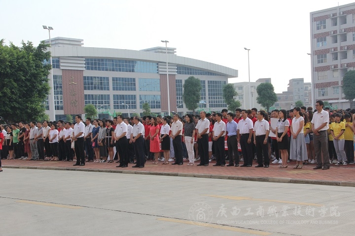 嶄新的晨光,迎來新的開始,8月29號(hào)上午7點(diǎn)50分,廣西工商職業(yè)技術(shù)學(xué)院于升旗臺(tái)舉行本學(xué)期期第一次升旗儀式。學(xué)院黨委書記覃武云、院長陳杰、黨委副書記蒙啟成及其他學(xué)院領(lǐng)導(dǎo),各部門、各系年級輔導(dǎo)負(fù)責(zé)人,2015級全體學(xué)生參加了升旗儀式。儀式由學(xué)院黨委副書記蒙啟成主持。