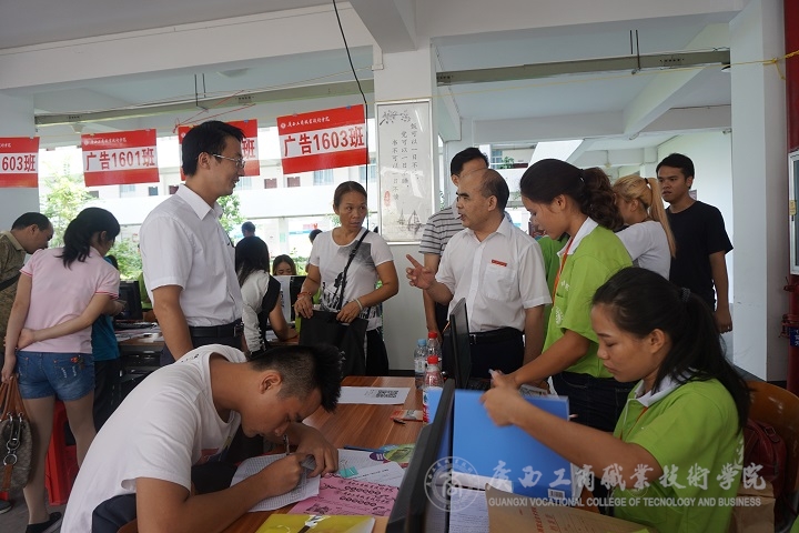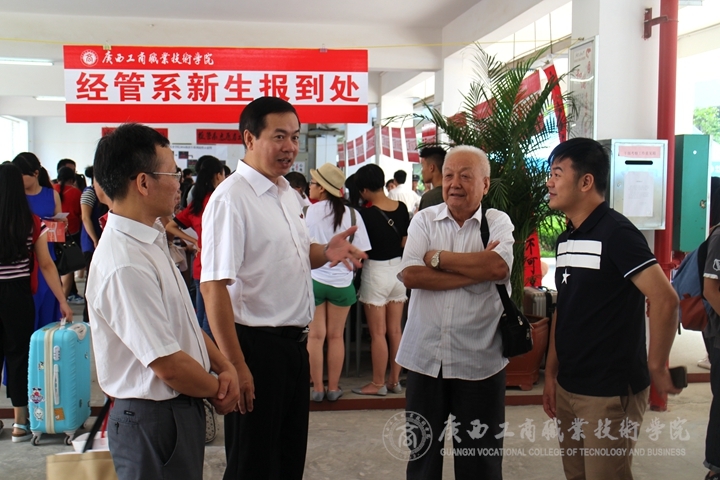 2016年9月8日上午8時(shí),廣商院迎新工作正式開(kāi)始。學(xué)院黨委書(shū)記覃武云、院長(zhǎng)陳杰、黨委副書(shū)記蒙啟成、副院長(zhǎng)李仕欽、副院長(zhǎng)李維等學(xué)院領(lǐng)導(dǎo)紛紛來(lái)到教學(xué)樓架空層新生注冊(cè)現(xiàn)場(chǎng),親自指導(dǎo)迎新工作。下午3時(shí)許,自治區(qū)糧食局副巡視員、人事處處長(zhǎng)韋尚英同志也來(lái)到廣商院,在學(xué)院領(lǐng)導(dǎo)的陪同下,巡視我院迎新工作,對(duì)我院新生報(bào)到、注冊(cè)、入住等具體工作予以關(guān)懷指導(dǎo)。
