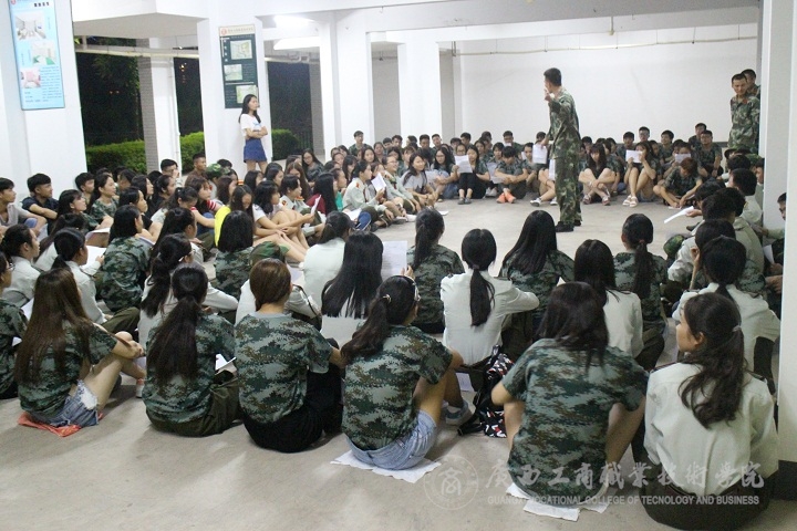 2016年9月20日19:30,新生軍訓(xùn)第一晚,夜晚的帷幕才剛拉開,嘹亮的軍歌已經(jīng)響起,“團結(jié)就是力量,團結(jié)就是力量,這力量是鐵,這力量是鋼……”他們的歌聲鏗鏘有力,富有激情,演唱的同學(xué)們都熱情飛揚,信心飽滿,在全場熱烈的掌聲中,新生又喊起了振奮人心的拉歌口號,這個連喊道“東風(fēng)吹,戰(zhàn)鼓擂,要拉歌,誰怕誰”那個忙接道“冬瓜皮,西瓜皮,你們不要耍賴皮”“機關(guān)槍,兩條腿,打得你們張不開嘴”一聲接一聲,一聲大過一聲,大家都被帶動了,扯開嗓子喊起來,一時間歡樂沸騰。訓(xùn)練場上到處飛揚著歌聲、笑聲、鼓掌聲、吶喊聲,一排排的風(fēng)景線成了一道道獨特的風(fēng)景線。