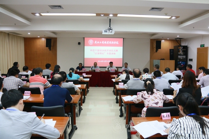10月14晚上,本次培訓(xùn)班開(kāi)班儀式暨“以案明紀(jì)”專(zhuān)題講座在廣西干部學(xué)院進(jìn)行。開(kāi)班儀式上,覃武云書(shū)記作了開(kāi)班動(dòng)員。他要求全體中層干部一是要充分提高培訓(xùn)意識(shí)。開(kāi)設(shè)培訓(xùn)班既是適應(yīng)新形勢(shì)下干部教育培訓(xùn)的需要,也是干部自身管理水平和執(zhí)行力提升的要求。二是要加強(qiáng)理論聯(lián)系實(shí)際,要帶著問(wèn)題學(xué),要學(xué)以致用。三是要嚴(yán)明紀(jì)律,要靜下心來(lái)認(rèn)真學(xué)習(xí)。開(kāi)班儀式結(jié)束后,覃武云書(shū)記做了“以案明紀(jì)”的專(zhuān)題講座,這起發(fā)生在我們身邊的案例,時(shí)刻警醒我們要廉潔自律,守住底線,老老實(shí)實(shí)做人,踏踏實(shí)實(shí)做事。