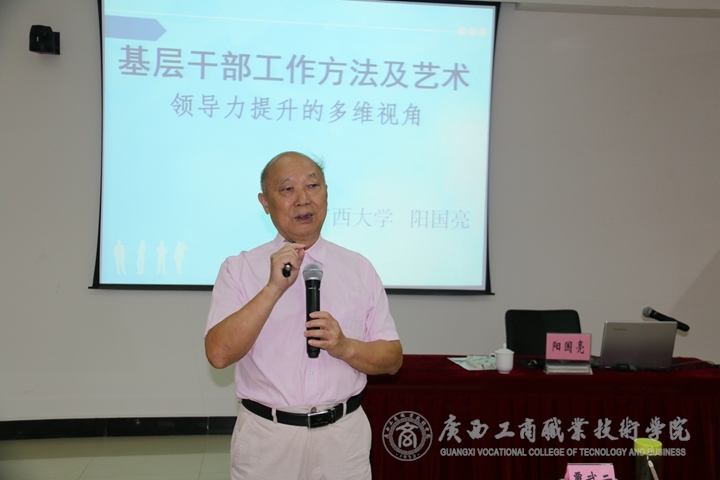 在之后的培訓(xùn)中,學(xué)員們共同學(xué)習(xí)了三個(gè)專(zhuān)題輔導(dǎo),一是廣西干部學(xué)院蔣明副院長(zhǎng)的《講紀(jì)律、守規(guī)矩與執(zhí)行力的提升》;二是廣西大學(xué)原黨委書(shū)記陽(yáng)國(guó)亮教授的《基層干部工作方法及藝術(shù)》;三是自治區(qū)人民政府參事、自治區(qū)政協(xié)文史和學(xué)習(xí)委員會(huì)副主任黃健教授的《“兩學(xué)一做”學(xué)習(xí)教育輔導(dǎo)》。教授、專(zhuān)家們都非常用心,課程內(nèi)容設(shè)計(jì)新穎,有深度、有廣度,學(xué)員們聽(tīng)后都深受教育和啟發(fā)。每個(gè)專(zhuān)題輔導(dǎo)結(jié)束后,陳杰院長(zhǎng)給專(zhuān)家贈(zèng)送了廣商院文化扇,并詳細(xì)介紹文化扇的內(nèi)涵,同時(shí)盛情邀請(qǐng)專(zhuān)家們到學(xué)院做專(zhuān)題講座。