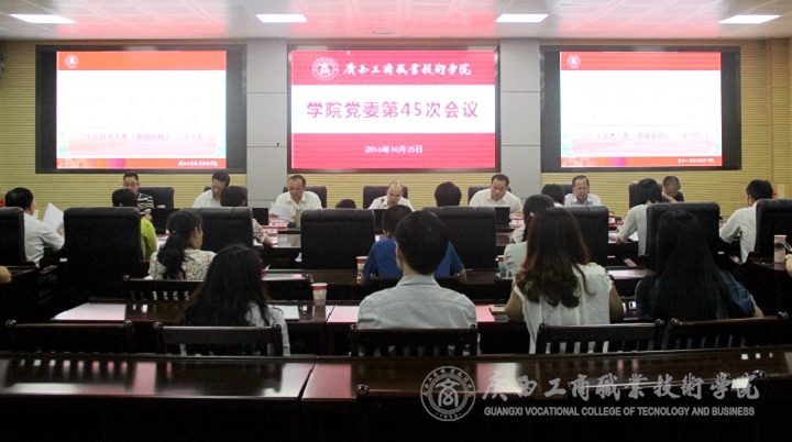2016年10月25日下午15:00,我院在校本部2119會議室召開了第45次黨委會。會上,學院黨委聽取了黨委宣傳部、黨委學生工作部、社科部等部門對學院思政、德育工作的分析。學院黨委書記覃武云、院長陳杰、黨委副書記蒙啟成、副院長李仕欽、副院長李維、副院長陳寧春,全體黨委委員參加會議,學院副廳級調(diào)研員黃永蓬、監(jiān)察審計室負責人列席會議。