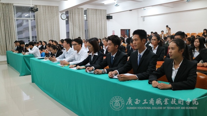 隨著大家井然有序的進(jìn)去會(huì)場(chǎng)并安靜就座后,開(kāi)班儀式正式開(kāi)始。首先,由院團(tuán)委學(xué)生副書(shū)記麥靖同學(xué)發(fā)言。她說(shuō),作為學(xué)生干部,我們將繼續(xù)堅(jiān)定熱愛(ài)學(xué)生工作事業(yè)的信心與決心,立足本職、服務(wù)大局,用自己的熱情和激情深入推動(dòng)良好校風(fēng),學(xué)風(fēng)的形成。接著,由黨委學(xué)生工作部副部長(zhǎng)廖顯圖老師講話。他提出,學(xué)生干部們應(yīng)具備“一顆紅心,六種能力,四種關(guān)系”的思想素質(zhì)?!耙活w紅心”指學(xué)生干部們應(yīng)該不忘初心,服務(wù)大局;”六種能力“指管理協(xié)調(diào)能力、觀察分析能力、語(yǔ)言表達(dá)能力、學(xué)習(xí)創(chuàng)新能力、處理突發(fā)事件的能力、自我管理與控制的能力;“四種關(guān)系”指學(xué)習(xí)與工作之間的關(guān)系、學(xué)生干部與同學(xué)之間的關(guān)系、學(xué)生干部之間的關(guān)系、學(xué)生干部與老師之間的關(guān)系。廖顯圖老師給我們指出的這些都是我們需要學(xué)習(xí)與提升的地方,他的一番話令現(xiàn)場(chǎng)掌聲不斷。