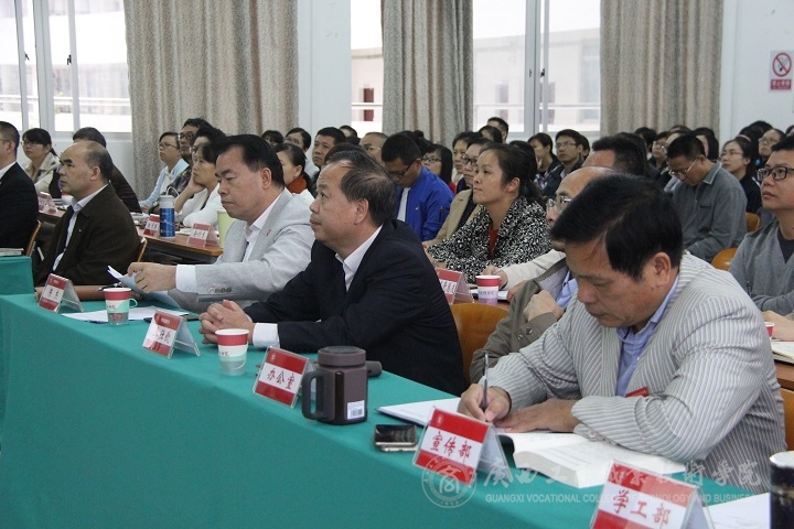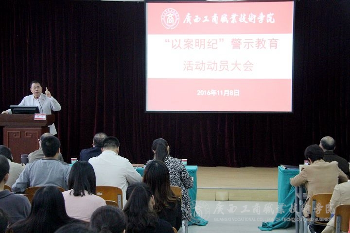 2016年11月8日下午,我院在校本部教學(xué)樓2145報告廳召開“以案明紀(jì)”警示教育活動動員大會。學(xué)院黨委書記覃武云、黨委副書記、院長陳杰、黨委副書記、紀(jì)委書記蒙啟成、副院長李仕欽,學(xué)院全體教職工參加了本次動員大會。