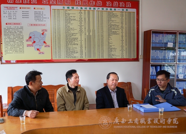 ??????? 11月23日和24日,陸川縣進入入冬以來最寒冷的日子,寒風夾著大雨。這一天,廣西工商職業(yè)技術(shù)學院李仕欽副院長率領(lǐng)學院 “美麗廣西”鄉(xiāng)村建設(shè)領(lǐng)導小組辦公室有關(guān)人員,赴陸川縣看望走訪掛職第一書記工作隊員,為他們駐點村精準扶貧工作加油、鼓勁并做后盾和強支撐。李仕欽副院長一行分別到學院駐點的四樂村、靖西村、八角村、良村、水亭村和那若村,看望了當?shù)貟炻毜谝粫浌ぷ麝爢T、了解他們的工作和生活情況,與各村村干部座談,了解精準扶貧的進展情況和存在困難。