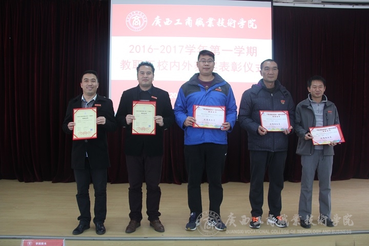 會(huì)上,覃武云書記、陳杰院長(zhǎng)為獲得自治區(qū)就業(yè)創(chuàng)業(yè)工作突出單位、學(xué)生自治區(qū)區(qū)內(nèi)外比賽優(yōu)秀指導(dǎo)教師代表頒獎(jiǎng);蒙啟成副書記、李仕欽副院長(zhǎng)為體育項(xiàng)目獲獎(jiǎng)代表教師頒獎(jiǎng);黃永蓬副廳級(jí)調(diào)研員、陳寧春副院長(zhǎng)、為獲得自治區(qū)教師參賽獲獎(jiǎng)的代表教師頒獎(jiǎng)。