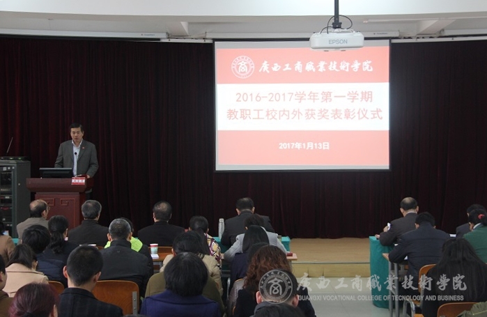 2017年1月13日下午,我院在校本部召開2016-2017學(xué)年第一學(xué)期教職工校內(nèi)外獲獎(jiǎng)表彰儀式。參加會(huì)議的有學(xué)院領(lǐng)導(dǎo)班子及全體教職工。會(huì)議由李維副院長(zhǎng)主持。