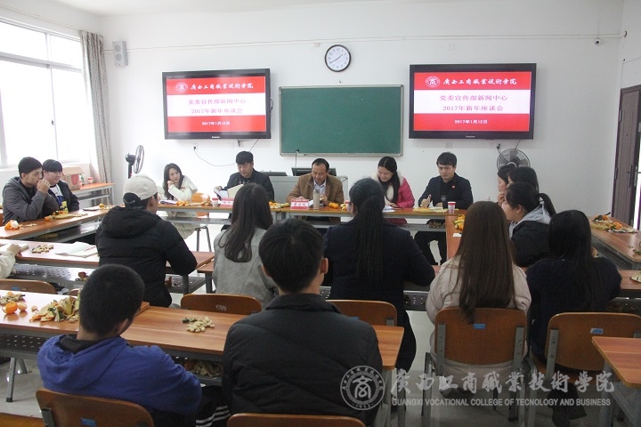 2017年1月12日中午,學(xué)院黨委宣傳部新聞中心在學(xué)院校本部召開(kāi)2017年新年座談會(huì),學(xué)院黨委副書(shū)記、紀(jì)委書(shū)記蒙啟成,學(xué)院黨委宣傳部部長(zhǎng)韋勝?gòu)?qiáng)、黨委宣傳部助理陳宇寧出席會(huì)議,新聞中心指導(dǎo)老師莫惘、馮艷瓊、雷航,新聞中心15級(jí)重要骨干和16級(jí)新生代表參加了此次座談會(huì)。
