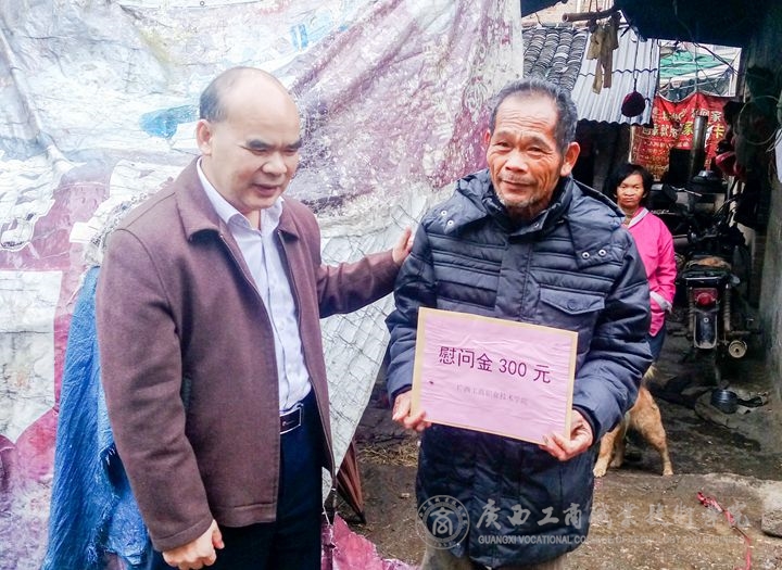 ? ? ? ? 1月17-19日,廣西工商職業(yè)技術學院開展慰問貧困村黨組織第一書記和駐村工作隊員及慰問村干部和困難戶活動,黨委書記覃武云同志代表全體干部職工向戰(zhàn)斗在脫貧攻堅第一線的同志們表示了衷心的感謝和崇高的敬意,并致以節(jié)日親切的問候和美好祝愿。