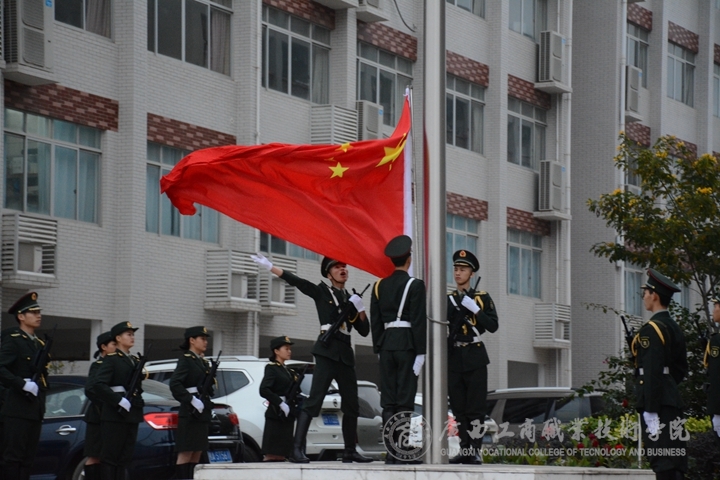隨風(fēng)飄揚(yáng)的五星紅旗下面,覃武云同志給廣商院學(xué)子提出三點(diǎn)希望:一是希望同學(xué)們能發(fā)揚(yáng)廣商院"精工智商"的精神。勤于學(xué)習(xí),善于學(xué)習(xí),做一個(gè)勤奮好學(xué)的學(xué)生!發(fā)揚(yáng)廣商院積極向上的精神風(fēng)貌!二是希望同學(xué)們能發(fā)揚(yáng)廣商院"明德修身"的精神,做一個(gè)有道德、有修養(yǎng)、有內(nèi)涵的人。希望同學(xué)們?cè)趯W(xué)習(xí)專業(yè)知識(shí)的同時(shí)也要不斷加強(qiáng)自身的思想道德修養(yǎng)。三是希望同學(xué)們砥礪奮進(jìn)。希望同學(xué)們?cè)谛碌膶W(xué)期里要不忘初心,克服困難,勇攀學(xué)習(xí)的高峰。