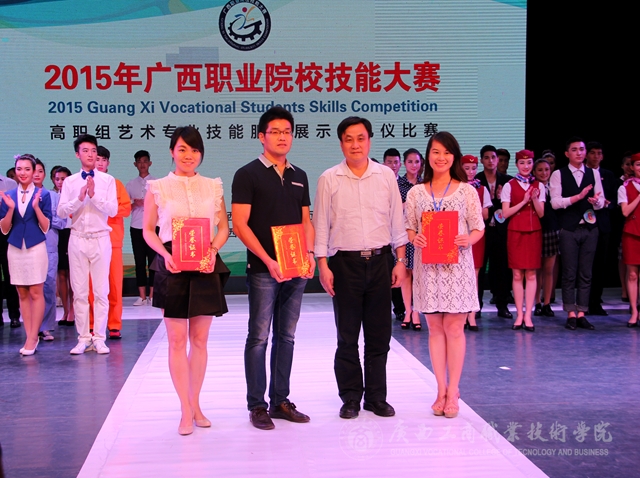 2015年4月29日下午,廣西職業(yè)院校技能大賽禮儀技能賽項(xiàng)在廣西藝術(shù)學(xué)院南湖校區(qū)舉行,在陶曉斌、朱克敏、梁曉霞三位老師的指導(dǎo)下,我院9名同學(xué)代表學(xué)校參加比賽,其中7名同學(xué)分別斬獲女子個(gè)人賽一、二、三等獎(jiǎng),男子個(gè)人賽兩個(gè)二等獎(jiǎng),兩個(gè)三等獎(jiǎng)。我院還獲得團(tuán)體賽三等獎(jiǎng)的好成績。