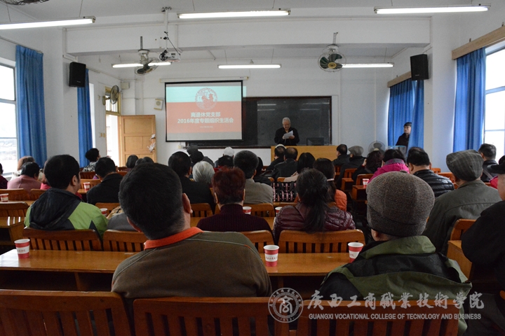 為進(jìn)一步加強(qiáng)學(xué)院離退休黨支部建設(shè),促進(jìn)離退休黨支部黨務(wù)工作順利開展,3月18日上午,離退休黨支部在學(xué)院東校區(qū)2教202教室召開離退休支部“兩學(xué)一做”專題組織生活會(huì)暨換屆選舉黨員大會(huì),會(huì)議組織離退休黨員開展組織生活會(huì),對(duì)全體離退休黨員進(jìn)行民主評(píng)議,并順利開展了支部換屆選舉。離退休黨員共50人出席了大會(huì)。學(xué)院黨委副書記、紀(jì)委書記蒙啟成,黨委組織部部長(zhǎng)蔣百平列席了會(huì)議。