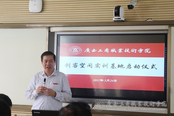 張學青副主任熱情的祝賀創(chuàng)客空間正式啟動,并表示,我們的學生正面臨廣闊的事業(yè)發(fā)展環(huán)境,自從李克強提出大眾創(chuàng)業(yè)萬眾創(chuàng)新、互聯(lián)網(wǎng)+以來,廣西也在電子商務方面提出“電商東盟、電商廣西、發(fā)展廣西”的思路。農(nóng)村電商作為事業(yè)發(fā)展的重點,政府采取一系列的措施和政策推進廣西的農(nóng)村電商,培育學生從事電商的能力。希望創(chuàng)客空間和社會緊密接觸,培養(yǎng)出更多的電子商務方面型的人才,為廣西農(nóng)村電商發(fā)展提供更多人才,做出自己的貢獻。