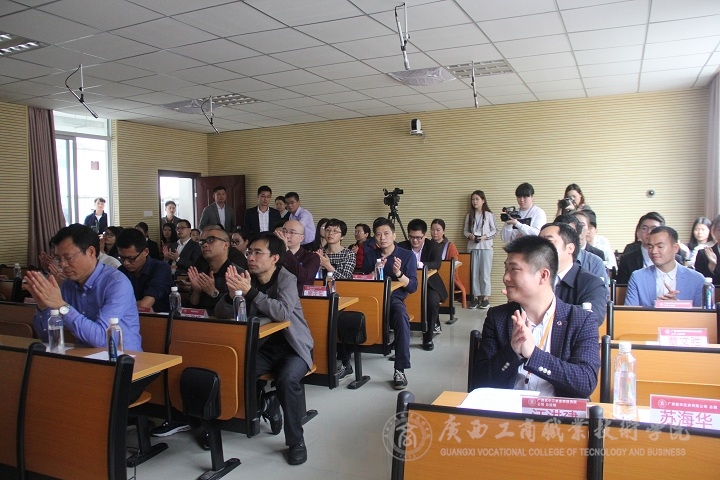 會議結束后,與會嘉賓在創(chuàng)客空間實訓基地舉行揭牌儀式,創(chuàng)客班的同學帶領嘉賓們實地參觀,廣西工商職業(yè)技術學院創(chuàng)客空間實訓基地啟動儀式圓滿結束。