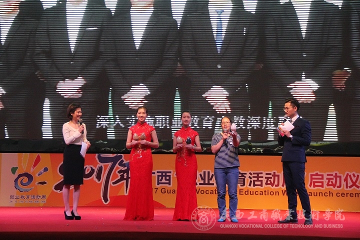 ? ? ? ? 2017年5月7日上午,由廣西壯族自治區(qū)教育廳主辦,主題為“共筑職教夢(mèng),喜迎十九大”的2017年廣西職業(yè)教育活動(dòng)周在柳州國(guó)際會(huì)展中心舉行啟動(dòng)儀式。自治區(qū)教育廳副廳長(zhǎng)黃雄彪、自治區(qū)人力資源和社會(huì)保障廳副廳長(zhǎng)黃智宇、柳州市副市長(zhǎng)焦耀光出席儀式并共同按下啟動(dòng)按鈕,標(biāo)志著本屆教育活動(dòng)周正式啟動(dòng)。據(jù)了解,本次活動(dòng)時(shí)間為5月7號(hào)至5月13日。