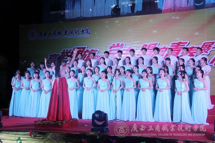《青春舞曲》、《共青團(tuán)員之歌》、《團(tuán)結(jié)就是力量》、《春已歸來》這一首首充滿著青春活力和“五四”情懷的歌曲,唱出了對國家的熱愛,唱出了堅定的共產(chǎn)主義理想信念,也唱出了廣商院學(xué)子們一顆顆熾熱的赤子之心及對美好未來的無限憧憬。比賽現(xiàn)場還邀請了嘉賓黃金老師為大家?guī)砭恃莩豆矆A中國夢》。