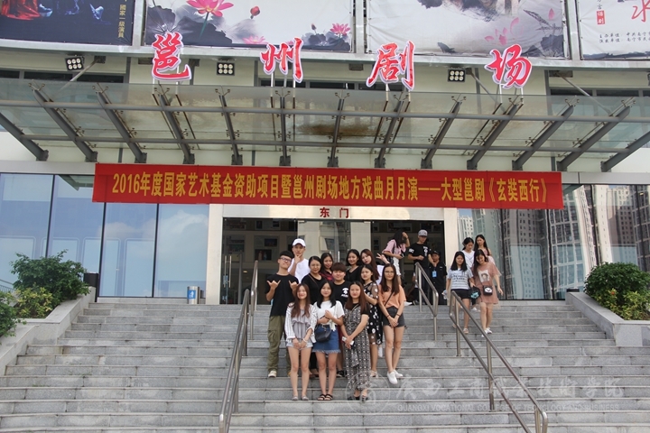 本次的大型邕劇《玄奘西行》是2016年度國家藝術(shù)基金資助項目暨邕州劇場地方戲曲月月演。本次外出學(xué)習(xí)活動的初衷是讓學(xué)生們可以近距離接觸南寧的傳統(tǒng)文化戲劇——邕劇,讓學(xué)生們感受傳統(tǒng)邕劇的魅力,讓更多的人了解邕劇、喜歡邕劇、傳承邕劇。