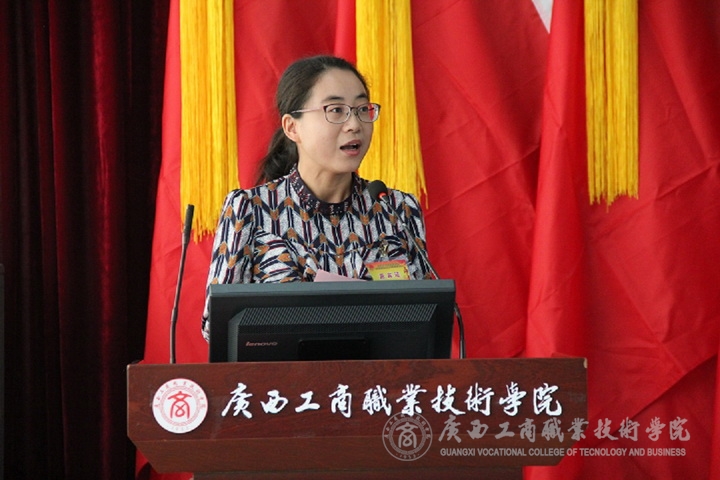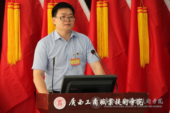 第二階段由廣西農(nóng)業(yè)職業(yè)技術學院團委韋媛書記代表兄弟院校團委致賀詞。隨后自治區(qū)糧食局團委原海明書記和我院黨委副書記、紀委書記蒙啟成同志發(fā)表了講話。第二階段會議由學院團委副書記趙婷主持。