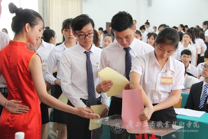 2017年5月27日上午9時,共青團廣西工商職業(yè)技術學院第二次代表大會暨第六次學生代表大會在校本部報告廳隆重舉行。學院黨委副書記、紀委書記蒙啟成出席會議。會議邀請了自治區(qū)糧食局原海明書記、廣西農(nóng)業(yè)職業(yè)技術學院團委韋媛書記、廣西機電職業(yè)技術學院團委吳少強書記、廣西幼兒師范高等??茖W校團委戴世琴書記、廣西交通職業(yè)技術學院團委張佺副書記、南寧職業(yè)技術學院團委孫潔晶副書記、廣西建設職業(yè)技術學院團委黃秀薇副書記、廣西衛(wèi)生職業(yè)技術學院團委孫雪婷副書記、廣西政法管理干部學院團委譚智林副書記、廣西師范學院師園學院團委羅超書記、廣西民族大學相思湖學院國際貿(mào)易系分團委陳禹名書記等同志共同出席。