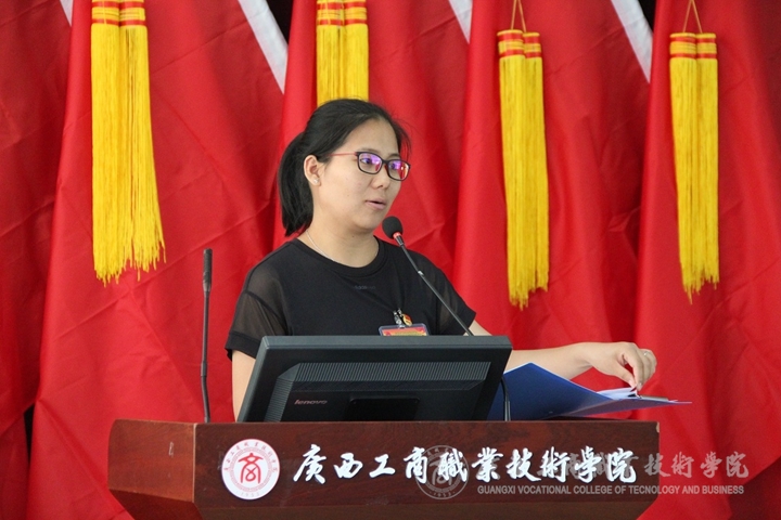 第二階段中,主持人宣讀大會議程。廖顯圖同志代表共青團廣西工商職業(yè)技術學院第一屆委員會作工作報告。報告回顧了第一屆委員會成立以來,緊緊圍繞學院黨委中心工作,堅持以立德樹人為根本,加強青年思想政治教育,引導廣大青年學生培育和踐行社會主義核心價值觀,不斷提高學生思想水平、政治覺悟、道德品質(zhì)、文化素養(yǎng),促進青年學生全面發(fā)展,健康成長成才。
