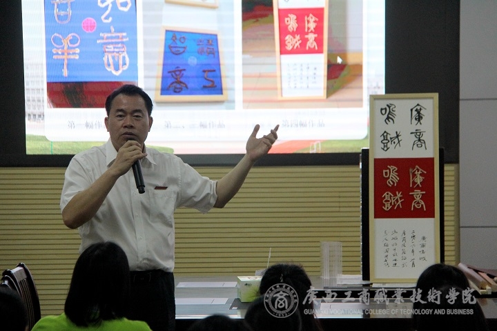 2017年6月13日下午,我院院長陳杰教授在校本部教學(xué)樓會(huì)議室與廣商院師生共同進(jìn)行書法變革與藤瓷書藝探索,并給大家?guī)硪粓?chǎng)精彩而獨(dú)具創(chuàng)意的文化盛宴。