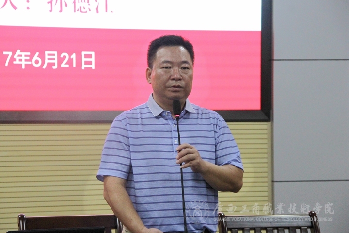 ? ? ? ? 2017年6月21日下午,我院在學(xué)院會議室開展了實(shí)習(xí)生黨員專題黨課活動。本次黨課由學(xué)院黨委學(xué)工部部長孫德江主講,由經(jīng)管系黨總支書記莫春華主持。各系黨支部代表、在南寧實(shí)習(xí)的學(xué)生黨員、學(xué)院15、16級的入黨積極分子參加了此次黨課。