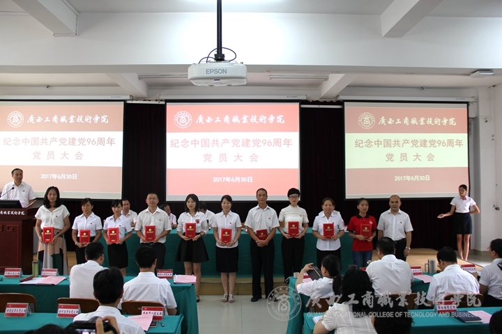 ? ? ? ? 院長、黨委副書記陳杰同志宣讀了學(xué)院黨委表彰2016-2017學(xué)年度先進基層黨組織、優(yōu)秀共產(chǎn)黨員、優(yōu)秀黨務(wù)工作者文件,財信系黨總支、組織人事黨支部、社科部黨支部、現(xiàn)代教育技術(shù)中心黨支部、經(jīng)管系學(xué)生黨支部等5個黨組織榮獲先進基層黨組織榮譽稱號,林昆榮等22名同志榮獲“優(yōu)秀共產(chǎn)黨員”榮譽稱號,李筱翎等9名同志榮獲“優(yōu)秀黨務(wù)工作者”榮譽稱號。黨委書記覃武云同志、院長陳杰同志為優(yōu)秀共產(chǎn)黨員頒獎;陳杰同志為優(yōu)秀黨務(wù)工作者頒獎;覃武云同志為先進基層黨組織頒獎。