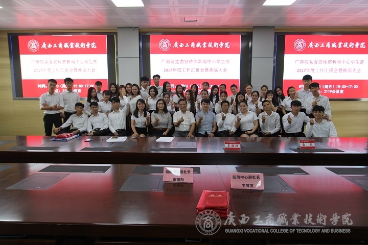 2017年6月30日下午,廣商院黨委宣傳部新聞中心學(xué)生部2017年度工作匯報(bào)會暨換屆大會在院本部召開。學(xué)院黨委副書記、紀(jì)委書記蒙啟成出席會議并講話。黨委宣傳部部長韋勝強(qiáng)、新聞中心指導(dǎo)老師莫惘、雷航,新聞中心全體成員及學(xué)院各大學(xué)生組織代表參加了本次大會。本次大會由新聞中心播主部副部長李柳娜主持。